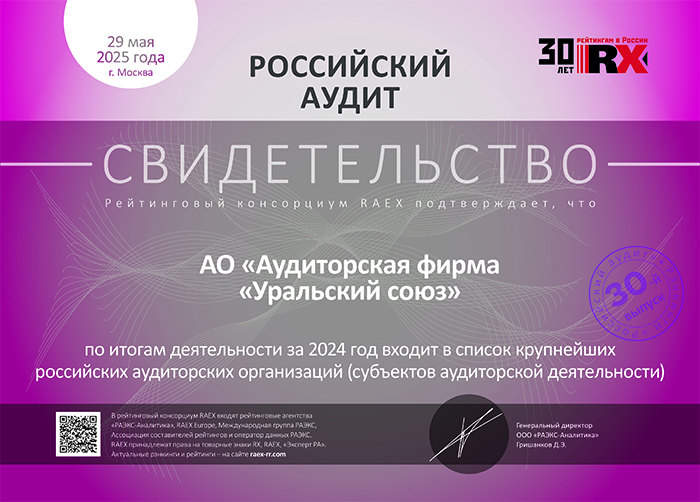 "...Уровень профессиональной экспертизы и квалификация специалистов «Уральского союза» из года в год полностью оправдывает наши ожидания...Рекомендации, предоставленные по итогам аудиторских проверок...