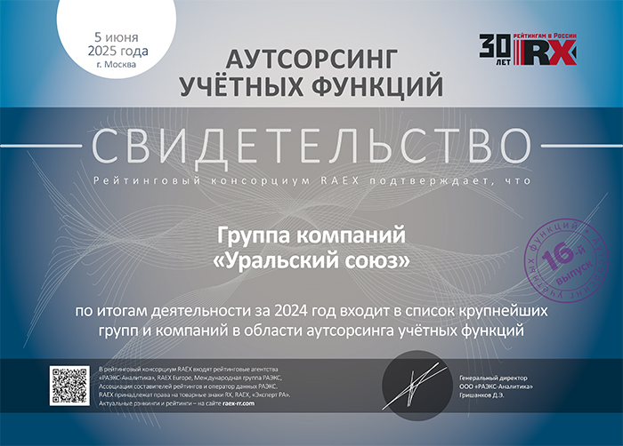 "...Уровень профессиональной экспертизы и квалификация специалистов «Уральского союза» из года в год полностью оправдывает наши ожидания...Рекомендации, предоставленные по итогам аудиторских проверок...